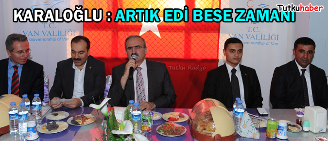 Van Valisi Münir Karaloğlu, Türkiye’nin son dönemde uyguladığı en önemli projelerinden birinin ‘Milli Birlik ve Kardeşlik’ projesi olduğunu anımsatarak: “Bunu bozmak isteyen, bunu sabote etmek isteyen hiç kimseye muhtarlar ve kanaat önderleri olarak fırsat vermeyin. Size gelip bu konuda kafanızı karıştıranlara da ne olur artık yeter ‘Edi Bese’ deyin.” dedi.