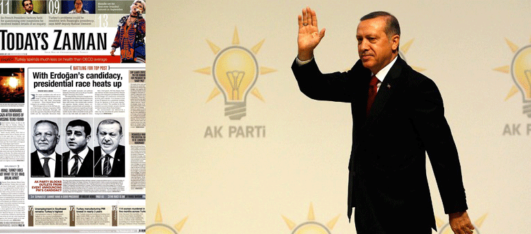 Cemaat hükümet çatışmasında aktif muhalefet yapan Gülen Cemaati'nin gazetesi Today's Zaman, Erdoğan'ın adaylık açıklamasını manşetten duyurdu.