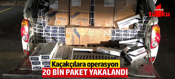 Araçta yapılan aramada 20 bin paket gümrük kaçağı sigara bulundu.
