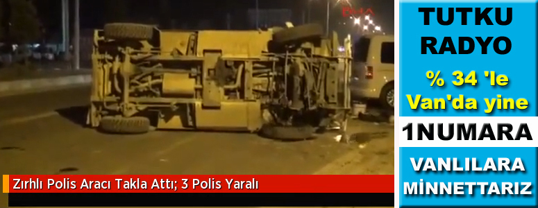 Van'da Süphan Mahallesi'nde, Cizre'de yaşanan olayları protesto eden gruba müdahale etmeye giden zırhlı araç takla attı. Kazada 3 polis memuru yaralandı.